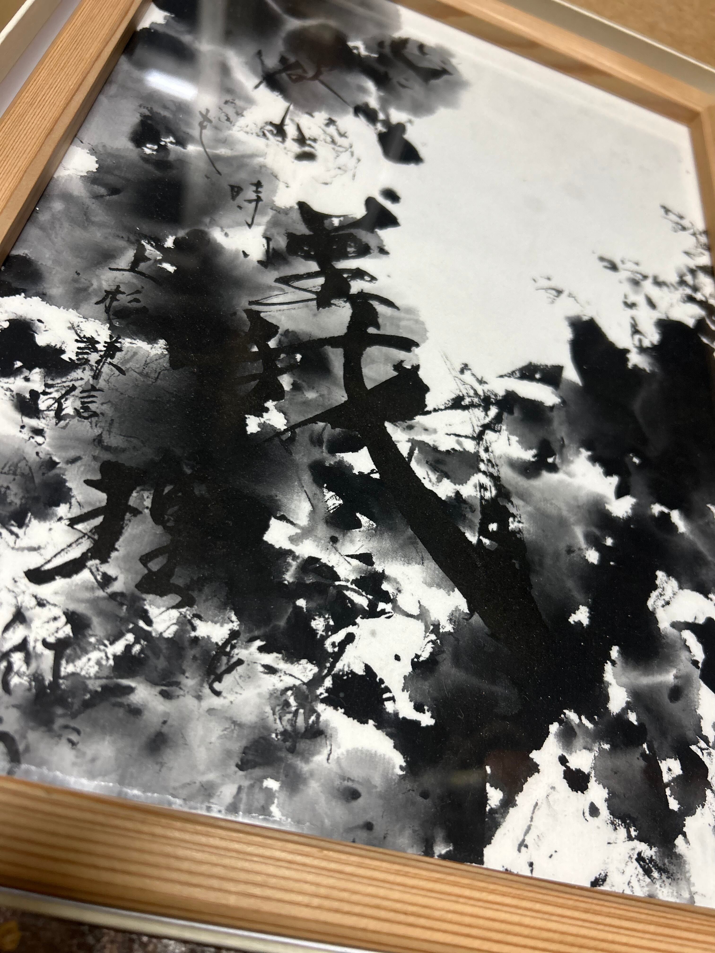その精神を、墨の力強い流れと深い余白の中に表現した作品。